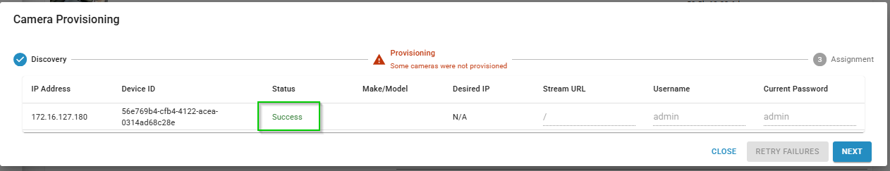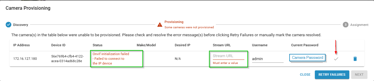 Some of the statuses may say “Unsupported Camera Make” If you see this add the RTSP URL (may have to ask Google for this) for the camera type and click the checkmark button to continue.