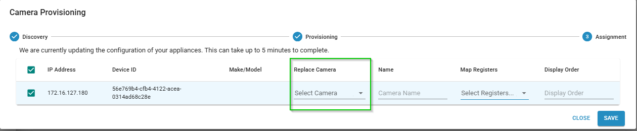 Hit Next , Replace the cameras in order with the replace camera dropdown. (green box)