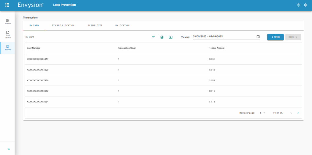 Note: By Card and By Card & Location views require a partial card number to be included in the point of sale data made available by your organization or POS vendor. In most instances, that will be either the last four, or up to the first six and last four digits of the card. Because of limitations on card information, this could result in two or more cards being represented as the same card (e.g.: a vendor only providing the last four digits of a card could result in some collision of those three cards all ending in 1234)